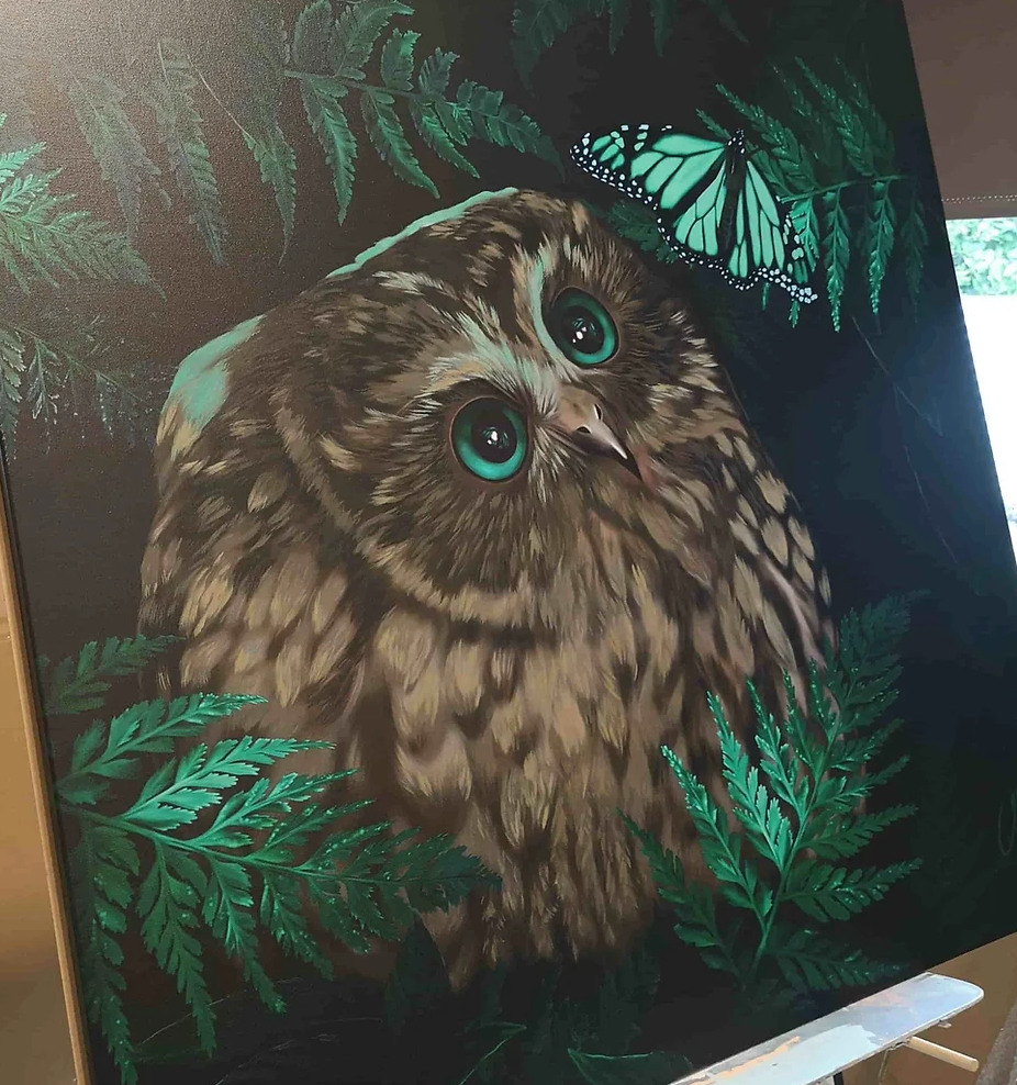 Ruru's new beginning - Hand-embellished Canvas